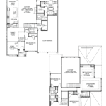 Home office with French doors and formal dining room along one side of two-story entry. Two-story family room with wall of windows and a fireplace opens to kitchen and morning area. Kitchen features walk-in pantry, a butler’s pantry and generous island with built-in seating space. First-floor primary suite. Dual vanities, a freestanding tub, separate glass-enclosed shower and two walk-in closets in primary bath. A second bedroom is downstairs. Media room, game room and three secondary bedrooms are upstairs. Extended covered backyard patio. Mud room off three-car garage. Representative Images. Features and specifications may vary by community.