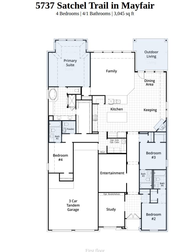 This awesome single-story home has been the best selling Highland Home floor plan for the past 10 years! This floor plan provides the perfect amount of wow factor combined with the functionality that a owner needs from a home that provides over 3000 square feet all one level. The most important features of this particular home is that all 4 bedrooms with all have their own private bathroom located in the bedroom. There is a also an additional powder bath down the secondary hallway for guests to use. The entertainment room can be used as a movie theater, billiards room, poker table, craft room, etc. This particular lot is going to provide for few steps leading into the home and none leading from the back patio out to the backyard area. Some interior options can still be chosen up until March 1, see sales counselor to confirm.