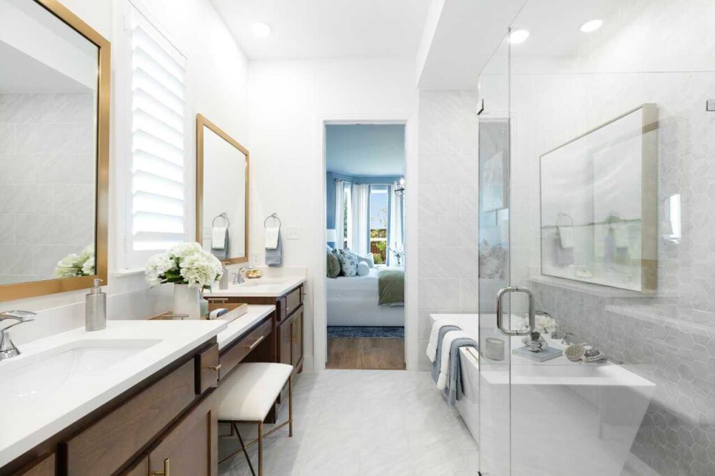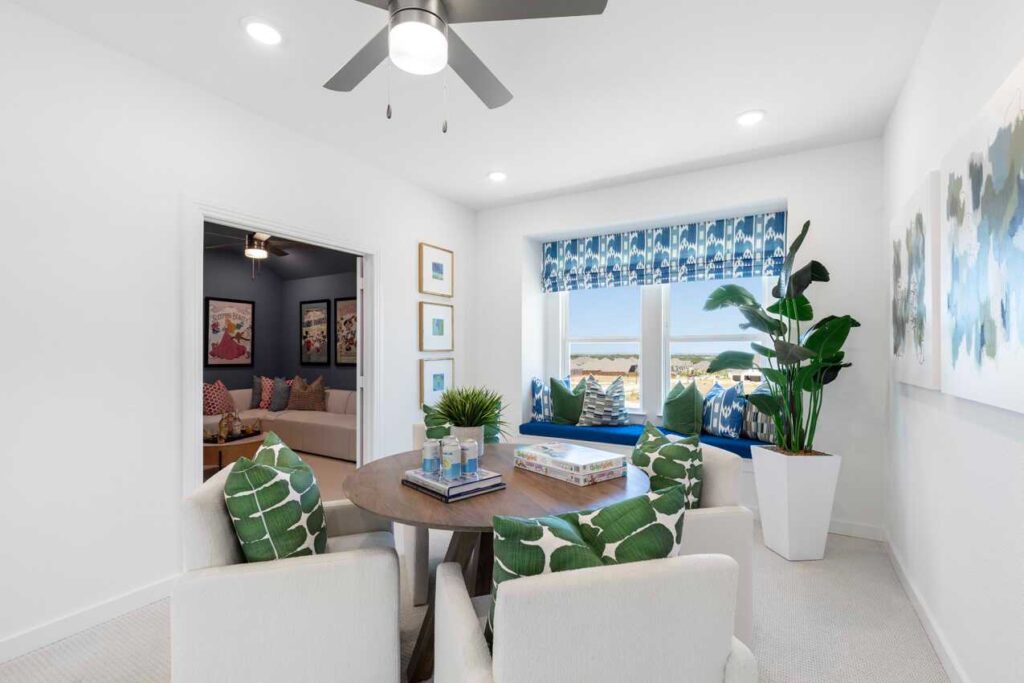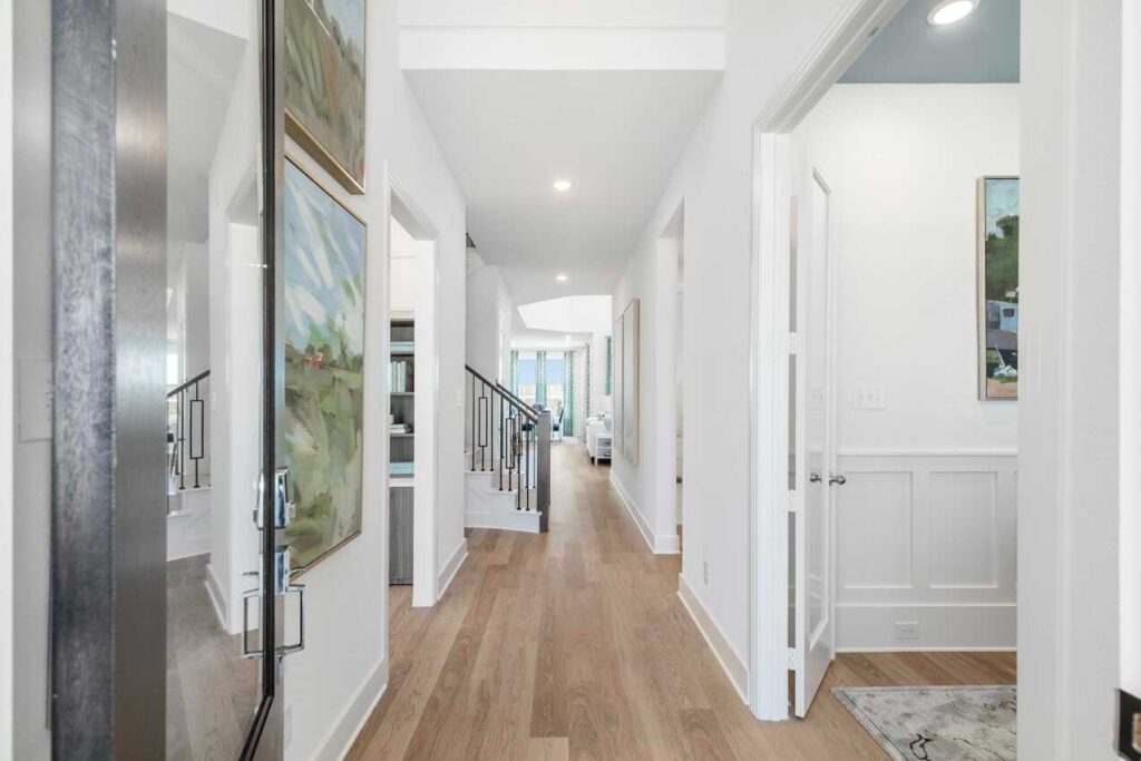 This two-story home has elegant curb appeal boasting a quaint front porch. Inside you will find a luxurious sense of style to include beautiful, engineered wood flooring in main living areas downstairs. We’ve included extended outdoor living, 8-foot interior and exterior doors 1st floor, freestanding tub in primary bath. The primary suite is downstairs, along with a study and secondary bedroom and bath. There are two bedrooms, a loft and entertainment room upstairs. This home is near the walking trail to Mayfair’s coming amenities!