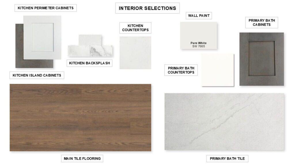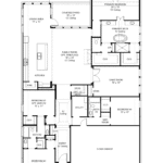 Extended entry leads to open family room, kitchen and dining area. Family room features wall of windows and a wood mantel fireplace. Kitchen hosts island with built-in seating space, two wall ovens, and a 5-burner gas cooktop. Game room with French doors just off family room. Secluded primary suite. Dual vanities, a freestanding tub, separate glass-enclosed shower and two large walk-in closets in primary bath. A Hollywood bath, high ceilings, large windows and abundant closet space add to this one-story design. Covered backyard patio. Mud room off three-car garage. Representative Images. Features and specifications may vary by community.
