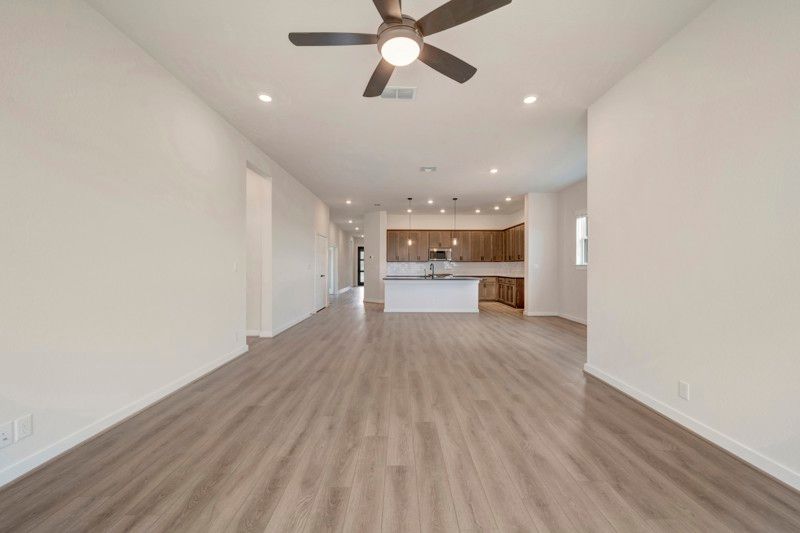 5817 Gunner Pt., New Braunfels, TX 78130: This spacious four bedroom, three bath home in Mayfair features a thoughtfully designed open concept layout. The seamless flow between the living room, kitchen, and dining areas creates an ideal setting for both entertaining and everyday living.